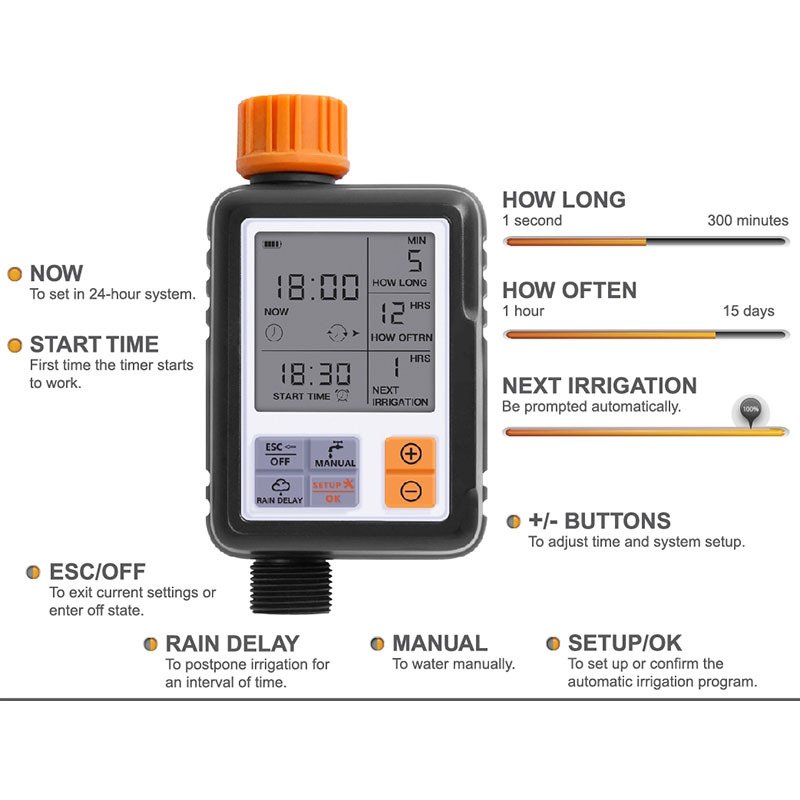 Only a couple of days use yet, but seems a great timer, as per description. Seller shipped quickly – slow delivery to Australia but that's not the seller's fault – would be happy to buy this item and from this seller again. Note: only comes with a 3/4" tap fitting (I needed a 1" tap fitting so had to buy an adapter locally)